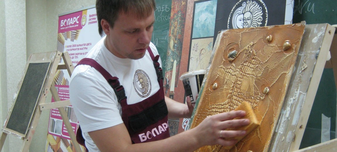 Сергей Сысоев продемонстрировал способы и варианты нанесения материалов ТМ БОЛАРС.